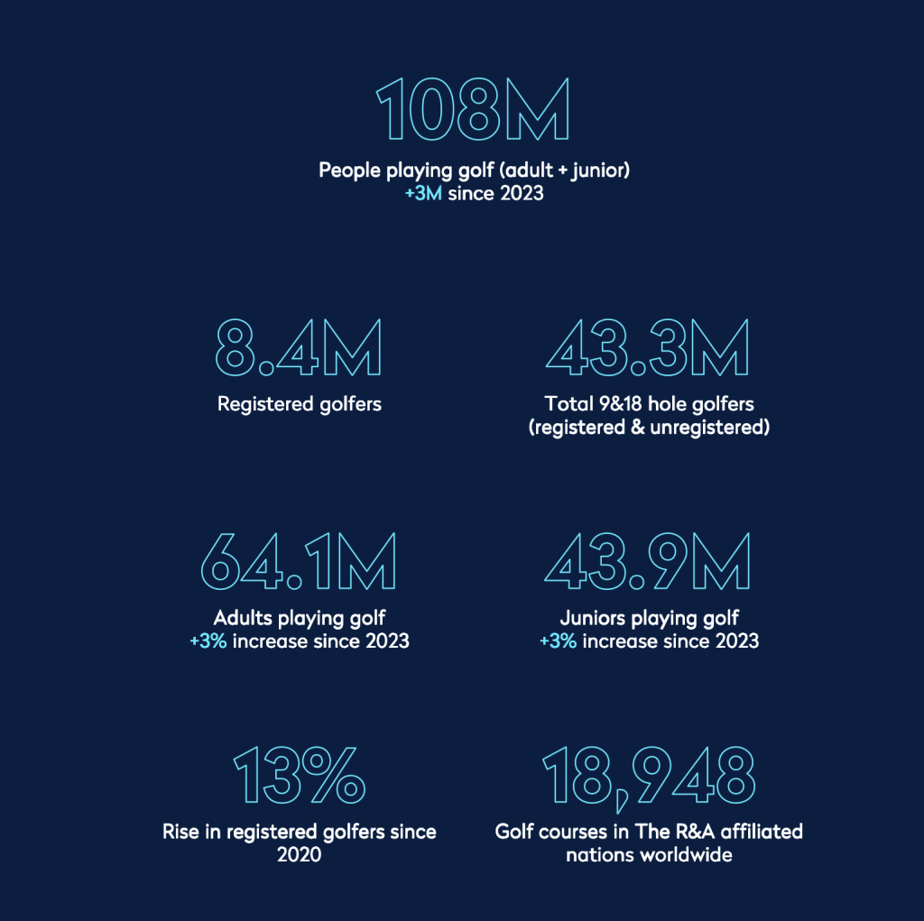 108 million adults and juniors are played golf in 2024 across all formats of the sport in The R&A’s affiliated markets – an increase of almost three million golfers since 2023.
